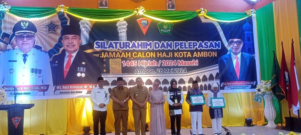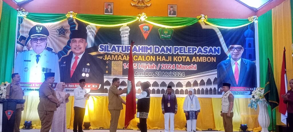 AMBON,Nunusaku.id,- Sebanyak 322 jamaah calon haji (JCH) Kota Ambon dilepas Penjabat Walikota Ambon Dominggus N. Kaya untuk diberangkatkan menjalankan ibadah haji di tanah suci Makkah, Selasa (28/5). Pelepasan ditandai dengan penyerahan pataka Kota Ambon dari Penjabat Walikota kepada pimpinan rombongan, serta pemberian paket bantuan Pemerintah Kota (Pemkot) kepada JCH yang diserahkan Penjabat Walikota, Ketua DPRD […]