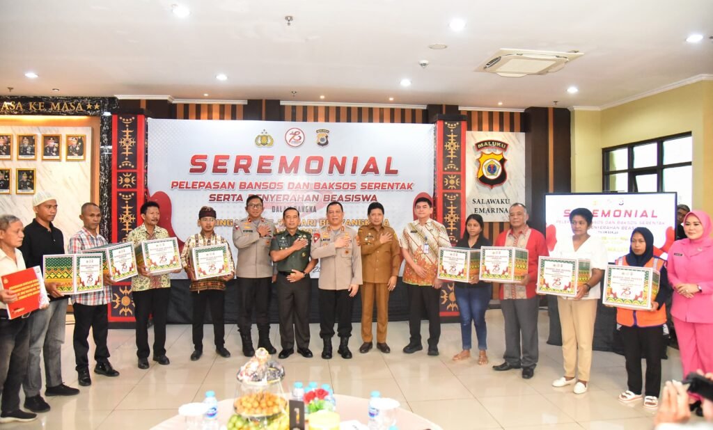 AMBON,Nunusaku.id,- Sebanyak 8.080 paket bantuan sosial (Bansos) sembilan bahan pokok (Sembako) disalurkan Polda Maluku kepada masyarakat kurang mampu di wilayah hukumnya. Selain Bansos Sembako yang penyalurannya untuk masyarakat di panti asuhan, panti jompo, buruh pelabuhan, petugas kebersihan, tukang ojek, tukang becak, dan sekolah luar biasa, diserahkan pula bantuan beasiswa kepada empat orang anak Purnawirawan dan […]