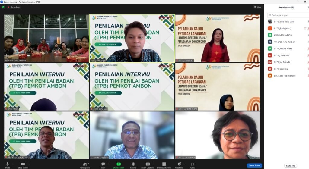 AMBON,Nunusaku.id,- Penilaian interview yang merupakan salah satu tahapan dalam kegiatan Evaluasi Penyelenggaraan Statistik Sektoral (EPSS) tahun 2024 dilakukan secara daring oleh Badan Pusat Statistik (BPS) Kota Tual terhadap Pemerintah Kota (Pemkot) Ambon. Penilaian secara silang itu dihadiri Kepala BPS Tual, Richard Philip Thenu, Plt. Kepala Dinas Kominfo dan Persandian Kota Ambon selaku ketua Tim Penilai […]