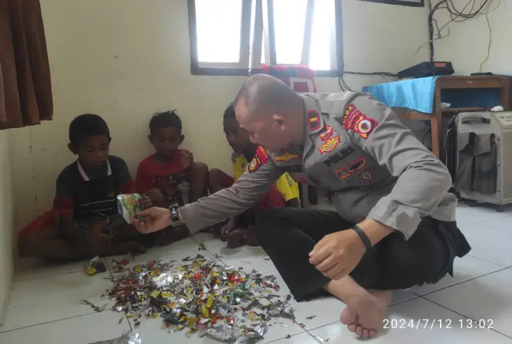 Kapolsek Ajari Anak-Remaja di Manipa Ubah Sampah Plastik Jadi Bantal