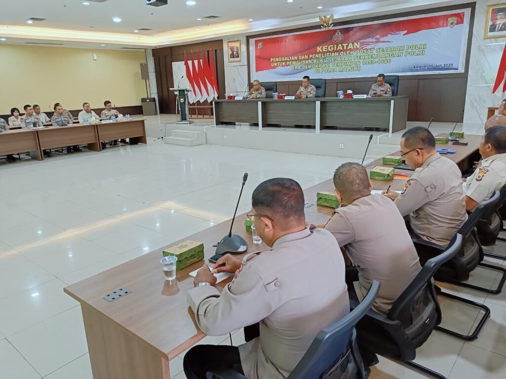 AMBON,Nunusaku.id,- Polda Maluku menerima kunjungan kerja tim penggalian dan penelitian pusat sejarah (Pusjarah) Mabes Polri, Rabu (16/7/25). Kunjungan kerja tim peneliti Pusjarah Polri berjumlah lima orang. Mereka diterima Kepala Biro SDM Polda Maluku Kombes Pol Djemy Junaidi di ruang rapat utama lantai lima Mapolda Maluku. Karo SDM meminta para Kasubag Renmin yang ada pada satuan […]