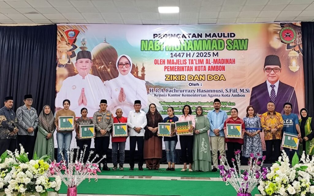 AMBON,Nunusaku.id,- Peringatan Maulid Nabi Muhammad SAW 1447 H/2025 di Kota Ambon menjadi momentum penting untuk merefleksikan kembali akhlak Rasulullah SAW serta meneguhkan semangat toleransi dan kebersamaan. Acara ini menghadirkan suasana penuh khidmat dengan lantunan salawat dan doa bersama, serta aksi sosial sebagai wujud nyata nilai keislaman. Majelis Ta’lim Al-Madinah Pemerintah Kota (Pemkot) Ambon yang menjadi penyelenggara […]