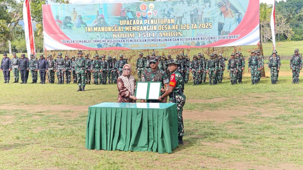 AMBON,Nunusaku.id,- Program TNI Manunggal Membangun Desa (TMMD) ke-126 tahun anggaran 2025 yang digelar Kodim 1504/Ambon resmi ditutup Pangdam XV/Pattimura Mayjen TNI Putranto Gatot Sri Handoyo di lapangan bola Dusun Telaga Kodok, Kecamatan Leihitu, Kabupaten Maluku Tengah (Malteng), Kamis (6/11/25). Penutupan berlangsung meriah dengan semangat kebersamaan yang mencerminkan wujud nyata kemanunggalan TNI dan rakyat. Kegiatan ini […]