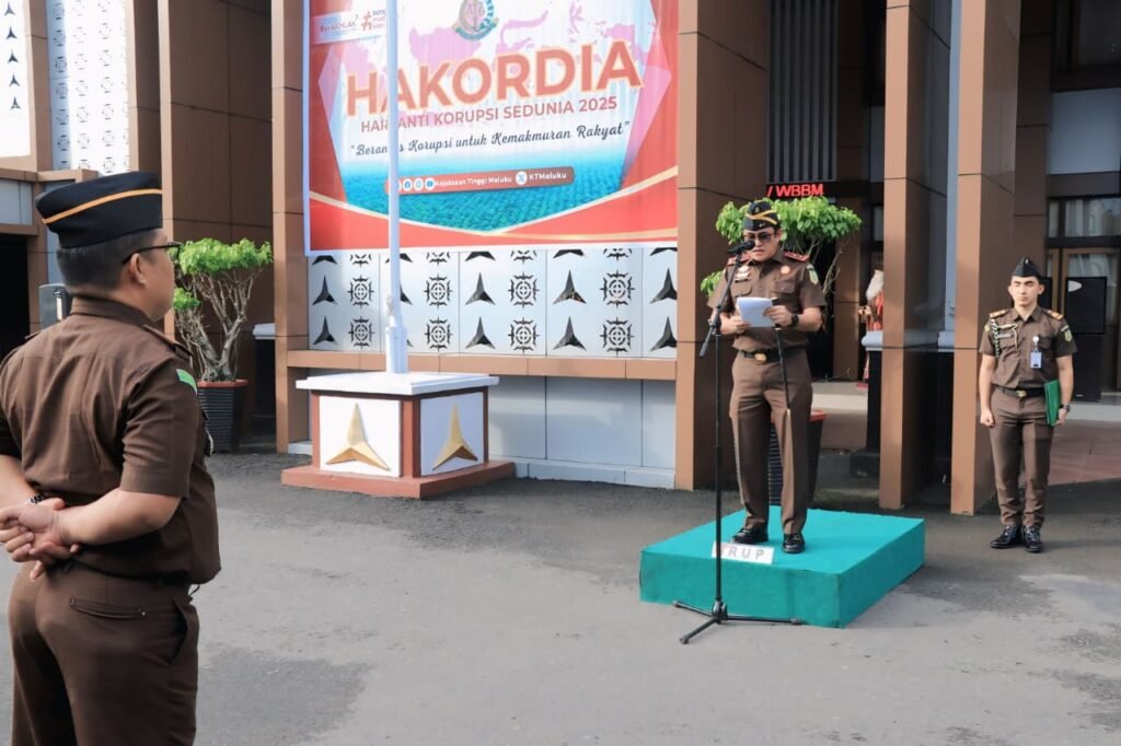 AMBON,Nunusaku.id,- Kepala Kejaksaan Tinggi (Kajati) Maluku, Rudy Irmawan memimpin pelaksanaan upacara peringatan Hari Anti Korupsi Sedunia (HAKORDIA) tahun 2025 di halaman Kantor Kejaksaan Tinggi Maluku, Selasa (9/12/25). Upacara tersebut diikuti Wakil Kepala Kejaksaan Tinggi Maluku Adhi Prabowo, para asisten, kepala bagian tata usaha, para koordinator, serta jajaran jaksa dan pegawai tata usaha. Tahun ini, Hakordia […]