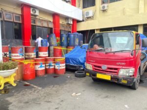 Dari lokasi kejadian, polisi mengamankan sejumlah barang bukti, diantaranya ribuan liter BBM yang tersimpan dalam drum dan jeriken, mesin pompa, selang, kendaraan operasional, serta dokumen pendukung lainnya.